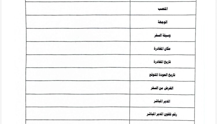وبحسب المصادر، يُحال الطلب بعد تعبئته إلى الجهات الأمنية لإجراء ما وصفته بـ”التحريات اللازمة”، قبل إصدار الموافقة أو الرفض، دون تحديد إطار زمني ملزم للرد على الطلبات، الأمر الذي أثار مخاوف الموظفين من استخدام الإجراء كأداة للضغط أو التضييق.